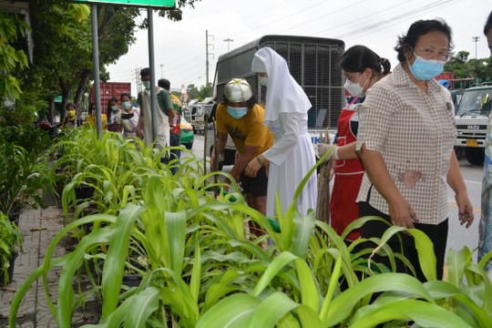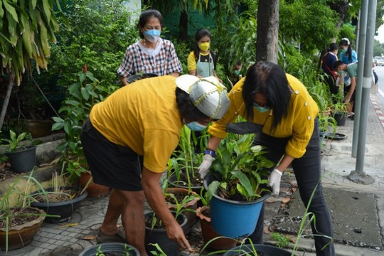 ประชาสัมพันธ์กิจกรรมของโรงเรียน ปีการศึกษา 2564 (23/09/2564) ...ประมวลภาพบรรยากาคณะผู้บริหาร คณะครูและเจ้าหน้าที่ กำลังร่วมมือร่วมใจกันปรับปรุงพื้นที่บริเวณหน้าโรงเรียนสามัคคีสงเคราะห์ ให้เป็นที่ปลูกสวนพืชผักและสวนสมุนไพร ในกิจกรรม สมุนไพรเพื่อชุมชนคลองเ