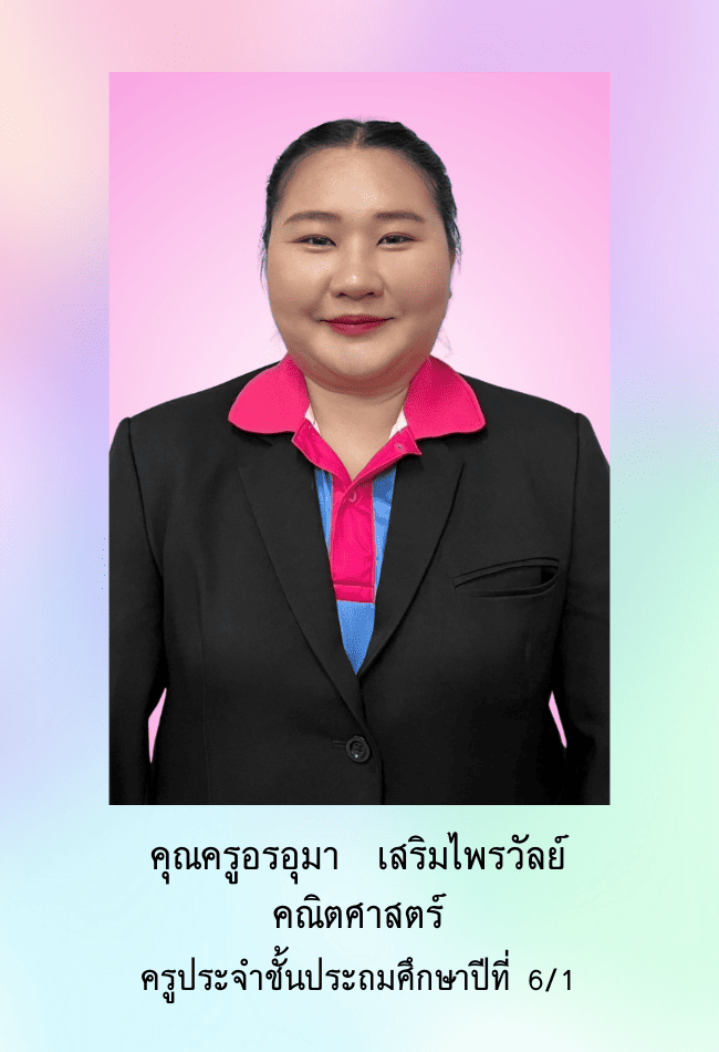 คุณครูอรอุมา เสริมไพรวัลย์ คุณครูประจำชั้นประถมศึกษาปีที่ 6/1